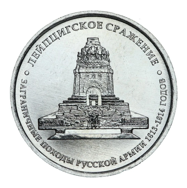 Монета номиналом 5 рублей "Лейпцигское сражение". 2012 год, Россия.